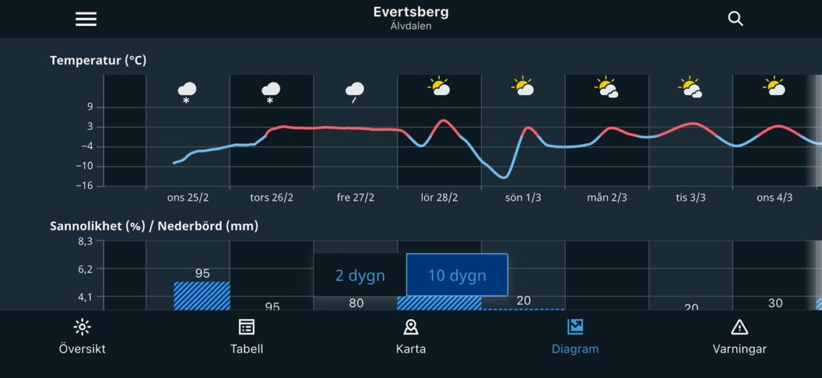 • Väder: Sol, mulet ca -10 – +2 (baserat på väderprognos för 1 mars).